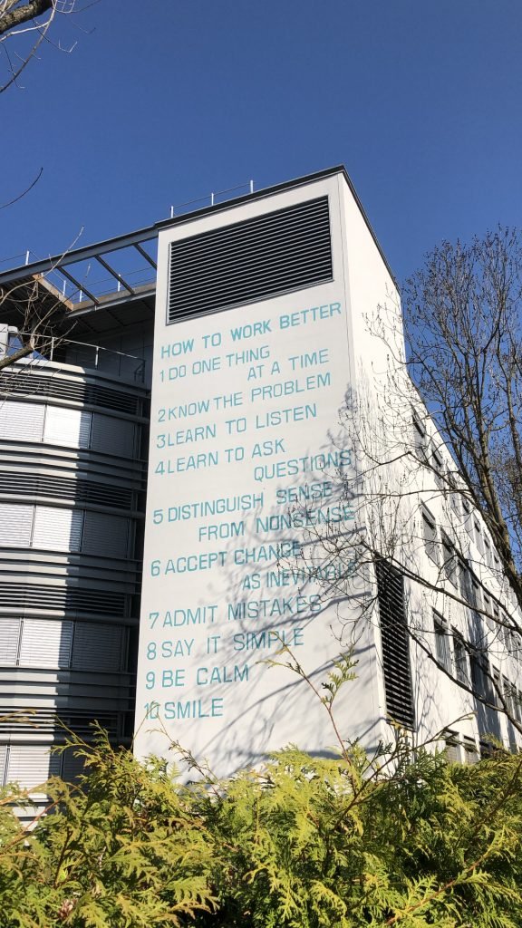 Vicino la stazione di Oerlikon però si trova un murales alquanto particolare: il titolo di quest’opera è “How to work better” ed elenca le 10 regole da seguire per fare un buon lavoro.