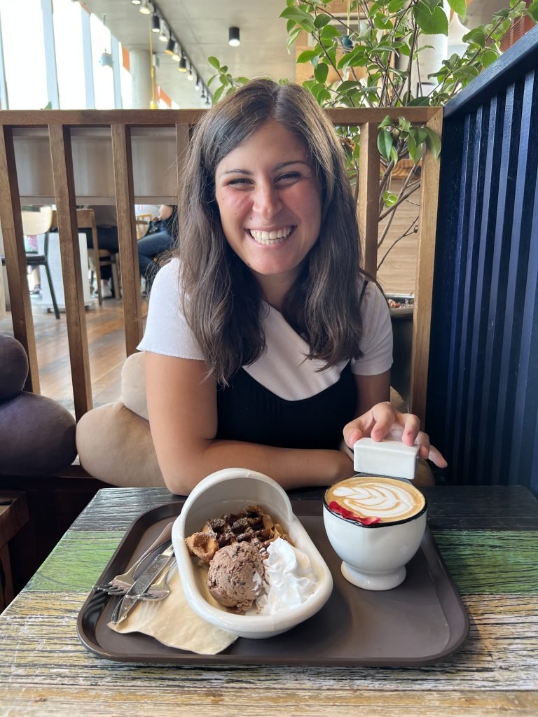 Noi abbiamo provato il caffè alle rose servito in una vera e propria tazza e il waffle al cioccolato con gelato, veramente buonissimi! Abbiamo speso 12€ per tutta questa dose di dolcezza e ne è valsa la pena, soprattutto per l’esperienza!