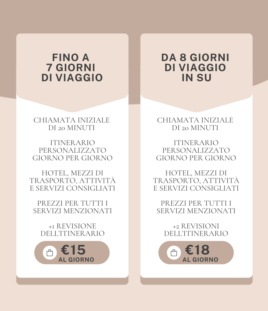 Se sei convinto che questo è il servizio che fa per te continua a leggere per sapere come richiedere il tuo itinerario di viaggio su misura.