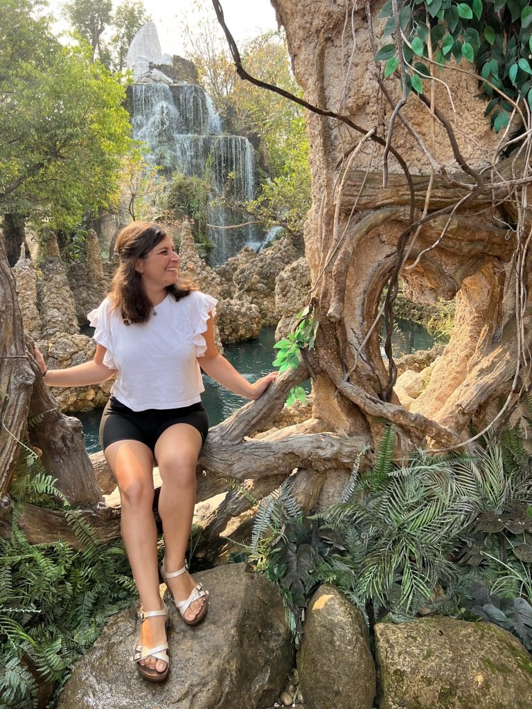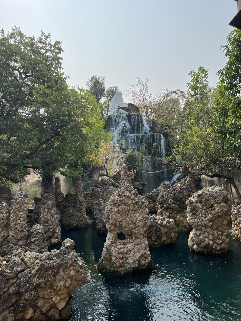 Il giardino nel complesso è carino, con rocce e cascate, varie aree in cui si può giocare con animali (caprette, conigli, pappagalli…) e dar loro da mangiare, ma è tutto completamente finto, in quanto è stato costruito dall’uomo e di naturale c’è ben poco.
