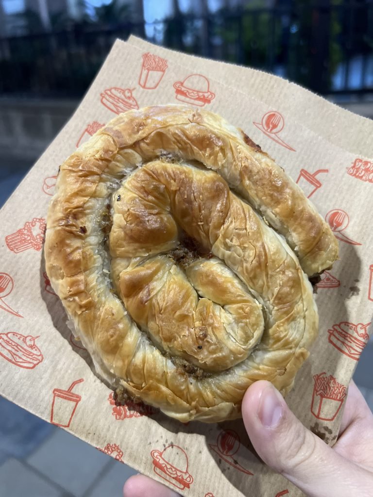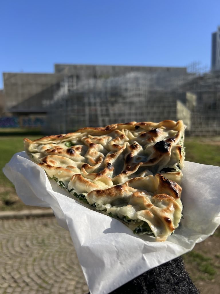 Iniziamo con una specialità, non solo di Tirana, ma di tutta l’Albania: il byrek. È una sorta di pasta sfoglia che viene cotta fino a diventare croccante. Solitamente è ripiena di carne, formaggio o spinaci, ma anche fagioli o pomodoro e cipolle. Viene venduta ovunque ed è sia un ottimo snack che un pasto veloce da consumare in strada.