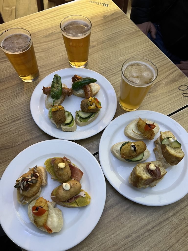 Montaditos e pintxos sono due tipi di stuzzichini tipici della cucina spagnola, spesso serviti come tapas in bar e ristoranti, accompagnati da una birra o del vino.
