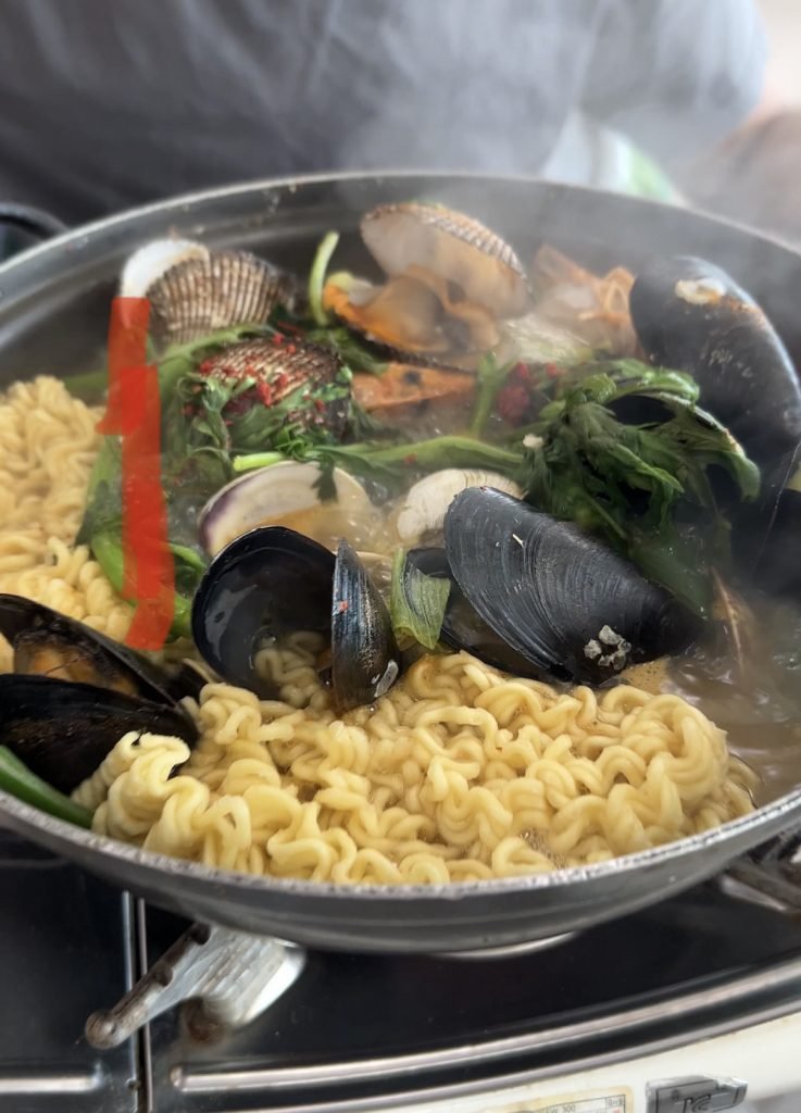 Le zuppe in Corea sono consumate regolarmente tutti i giorni e sono anche molto buone. Soprattutto nella zona di Busan però è diffusa la zuppa con i frutti di mare freschissimi, che vi consiglio di provare perché gustosissima. Noi di solito prendevamo una porzione da dividerci, a cui poi aggiungevano qualche altro piatto come i mandu.