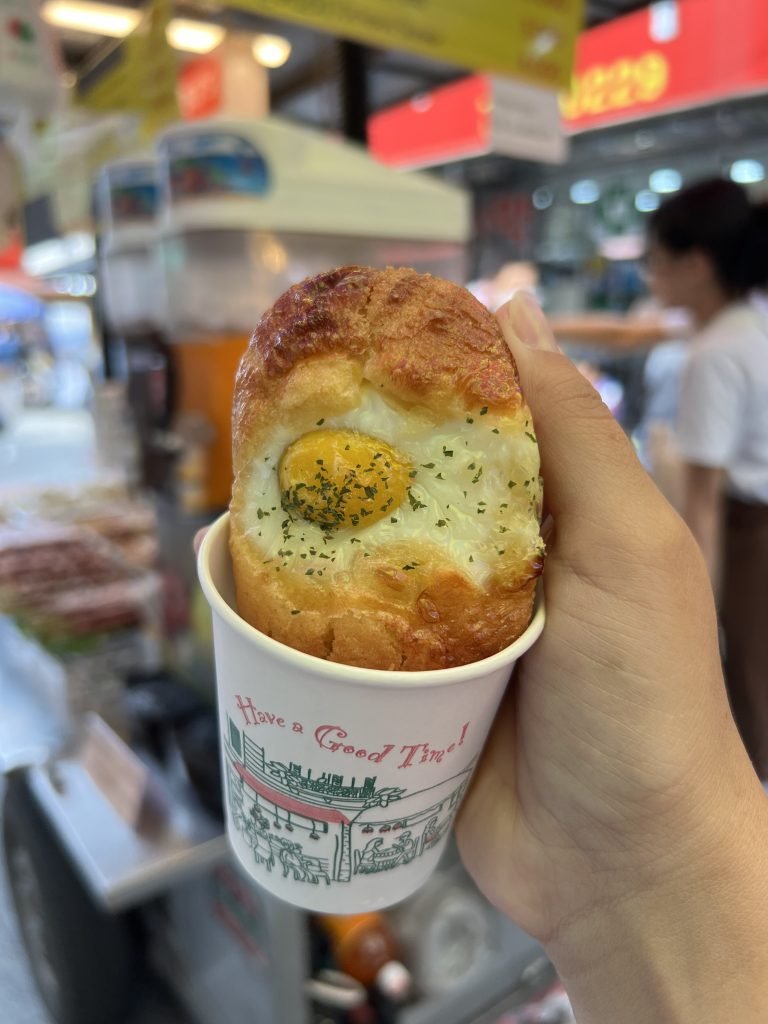 Snack da passeggio che si trova nelle bancarelle per le strade è il gyeran-ppang, un soffice plumcake salato con sopra un uovo. A me è piaciuto tantissimo!