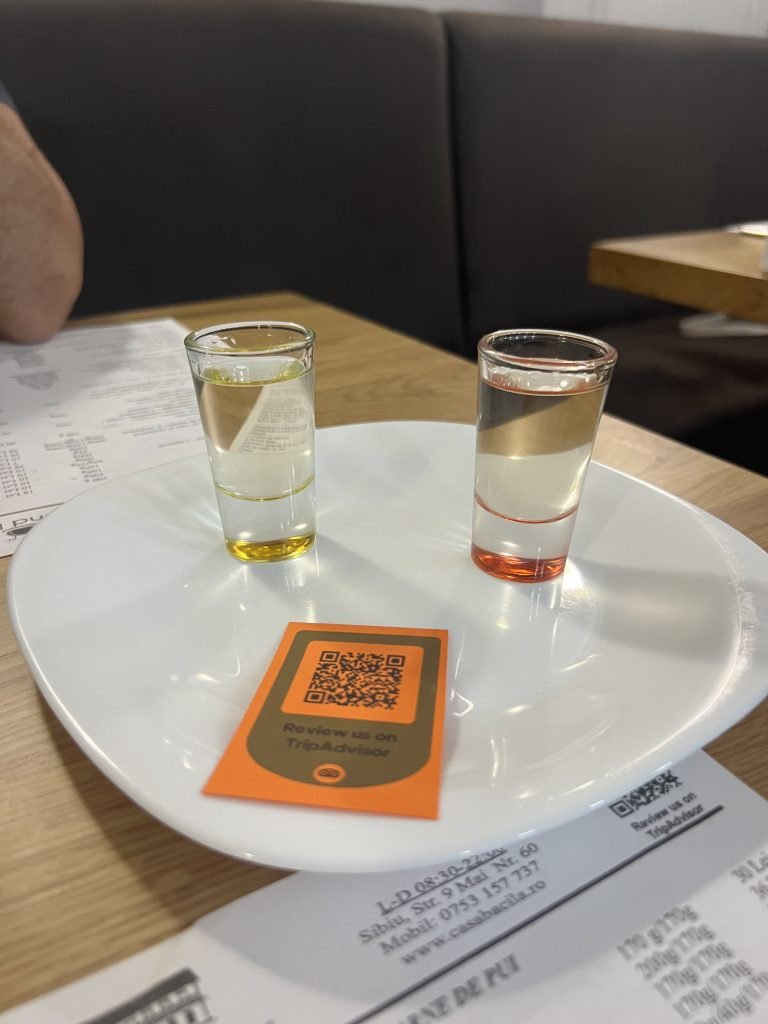 La palincă è un distillato, tipico della Transilvania, servito generalmente a fine pasto, dal sapore molto forte.