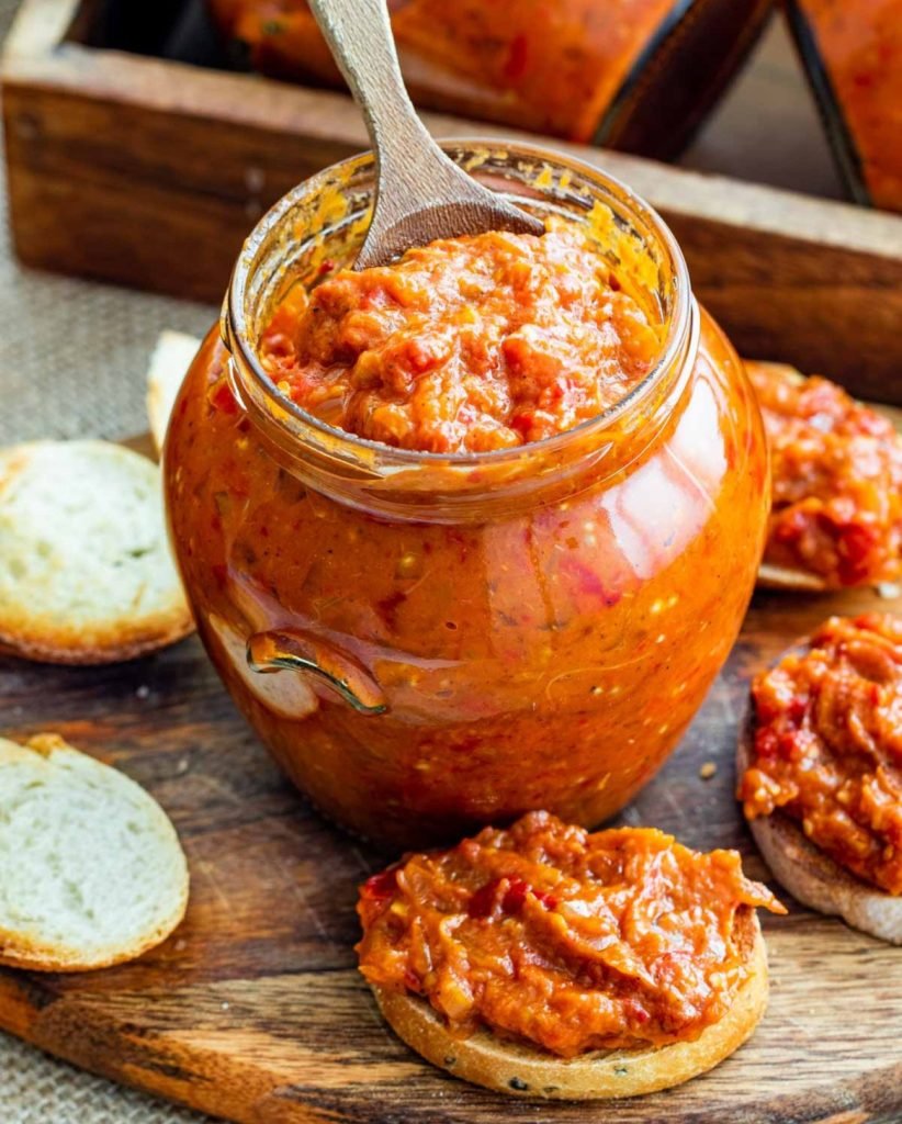La zacuscă è una crema spalmabile a base di melanzane, peperoni arrostiti, cipolla e pomodoro, che si consuma fredda con pane fresco e generalmente come antipasto.