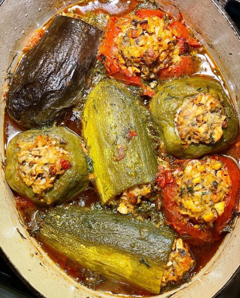 Gli ardei umpluți sono peperoni ripieni di carne macinata, riso, cipolla e spezie, cotti al forno o in umido con salsa di pomodoro.