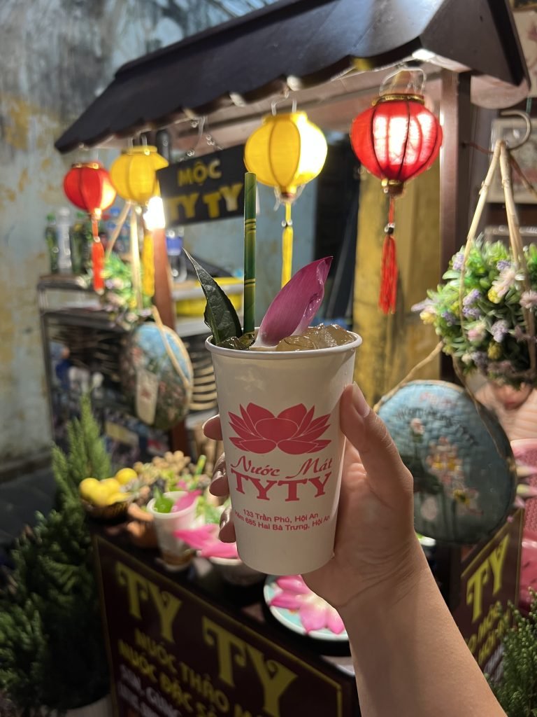 Sempre a Hoi An vi consiglio di provare il lotus tea, una bevanda freschissima e dolcissima servita con foglie di fiore di loto.