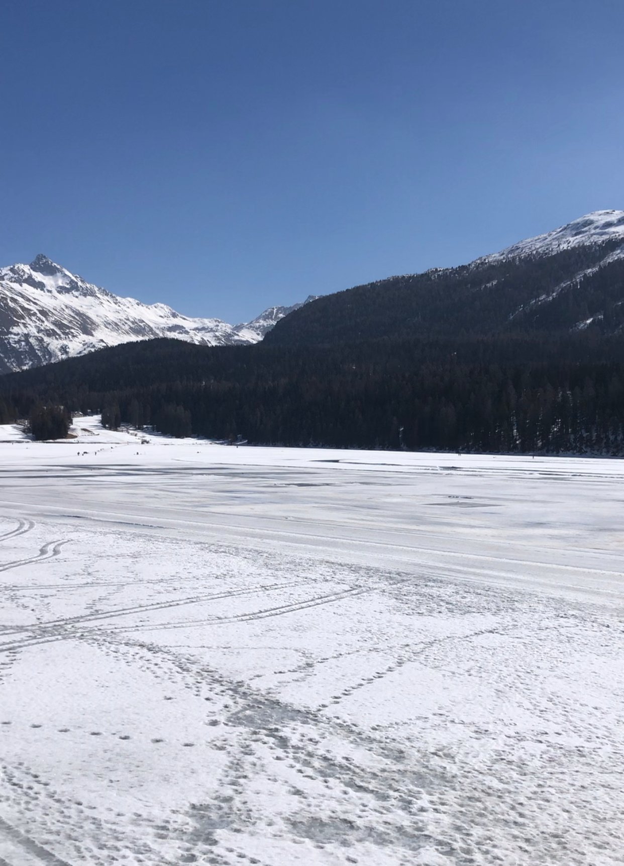 Il paesino di Sankt Moritz si affaccia sul grande lago, che è diventato uno dei simboli di questa località.