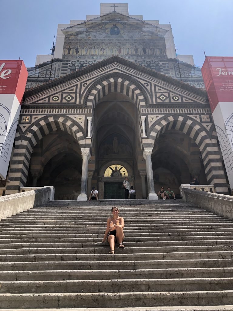 Una volta raggiunta, parcheggia sul lungomare e dirigiti verso la Cattedrale di Sant’Andrea che domina la piazza principale di Amalfi. È il luogo simbolo di questo paese e si trova in fondo ad una lunghissima rampa di scale, che la collocano in posizione sovrastante l’intera piazza.