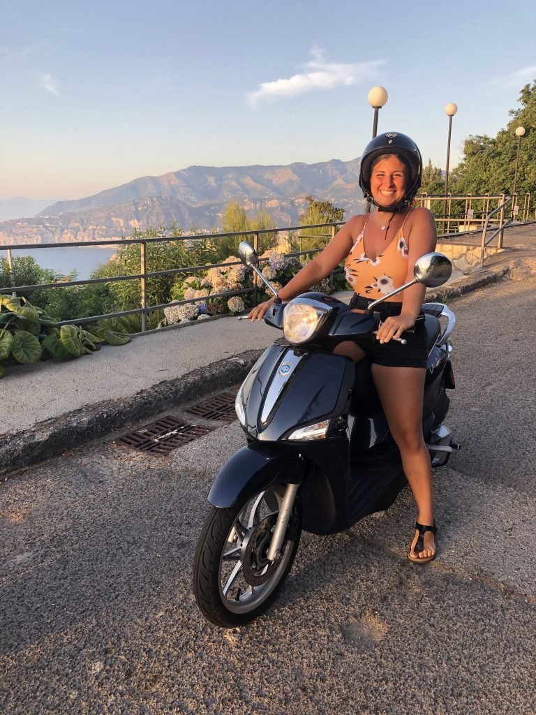 • in motorino, senza dubbio il modo migliore per girare senza problemi tutta la costiera. Comodo, economico, veloce e senza il rischio di non trovare parcheggio o rimanere bloccati nel traffico. Noi abbiamo noleggiato un 125cc tramite un’agenzia viaggi che si trova proprio difronte l’appartamento in cui eravamo e ci è costato 35€, ma se vuoi ce ne sono anche di altre cilindrate;