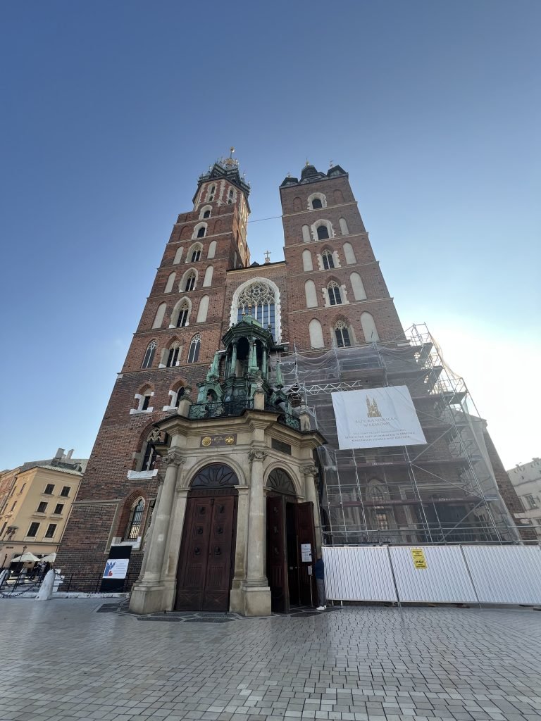La Cattedrale di Santa Maria è uno dei simboli di Cracovia, caratterizzata dalla sua facciata asimmetrica, con due torri di diversa altezza. Secondo la leggenda, infatti, la costruzione delle due torri della Cattedrale venne affidata a due fratelli architetti, tra i quali nacque una competizione che portò il fratello maggiore ad accoltellare il minore, la quale torre rimase incompiuta. A questa storia è anche legato il coltello appeso all’ingresso del Mercato dei Tessuti di cui abbiamo parlato in precedenza.