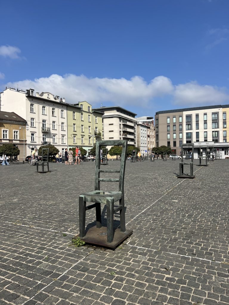 • la piazza del Memoriale del Ghetto Ebraico, un luogo che colpisce profondamente in cui troverai grandi sedie in bronzo sparse nella piazza in ricordo delle vite spezzate durante la tragedia della Seconda guerra mondiale: ogni sedia è un simbolo silenzioso dell’assenza e della memoria.