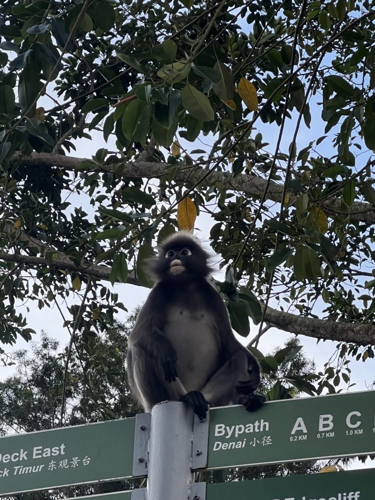 Una volta su, tra terrazze panoramiche e templi, è possibile vedere da vicino anche le famose e particolari “dusky leaf monkeys”, anche dette scimmie con gli occhiali o scimmie a foglia scura, proprio perché si nutrono solo di piccole foglie appena nate dagli alberi.