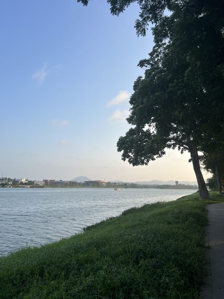 È un fiume molto grande e attraversato da tantissimi ponti che collegano la parte nuova e quella antica di Hue.