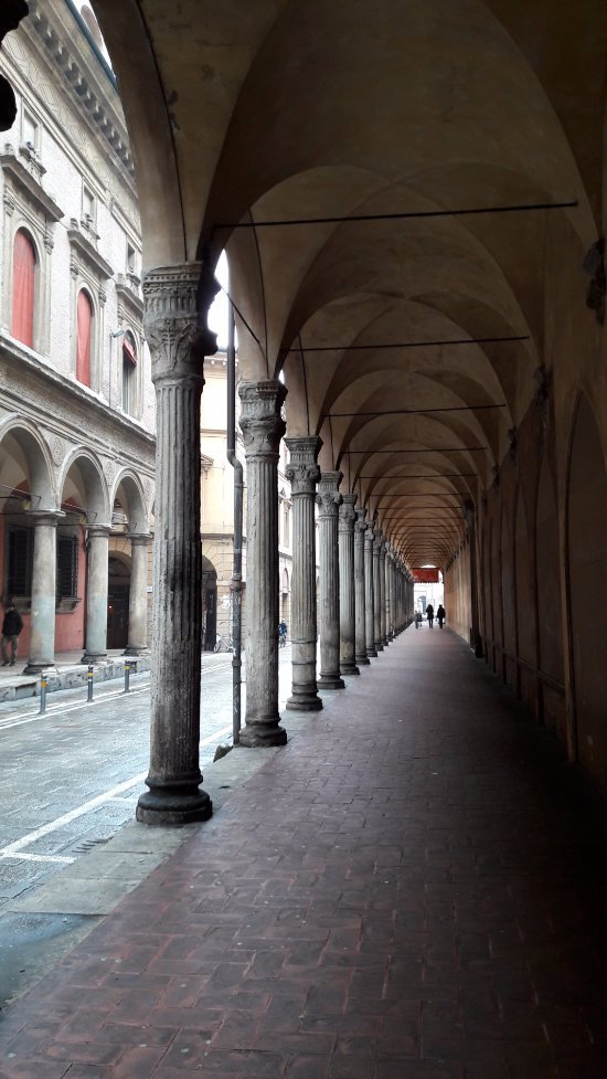 - poi perché guardandola dall’alto si può notare le oltre 350 sfumature che vanno dal rosso al giallo che caratterizzano i suoi edifici. Questa sua colorazione è dovuta all’uso di mattoni (il cosiddetto “mattone bolognese”) con i quali sono stati costruiti i palazzi e le torri nel Medioevo e il quale uso è diventata una vera tradizione urbanistica nei secoli. Di rosso infatti sono colorati i suoi portici, gli edifici principali, Piazza Maggiore e il suo centro storico, così come il rosso è il colore di famosi marchi di auto come Ferrari, Lamborghini e Maserati nati proprio in questa città.