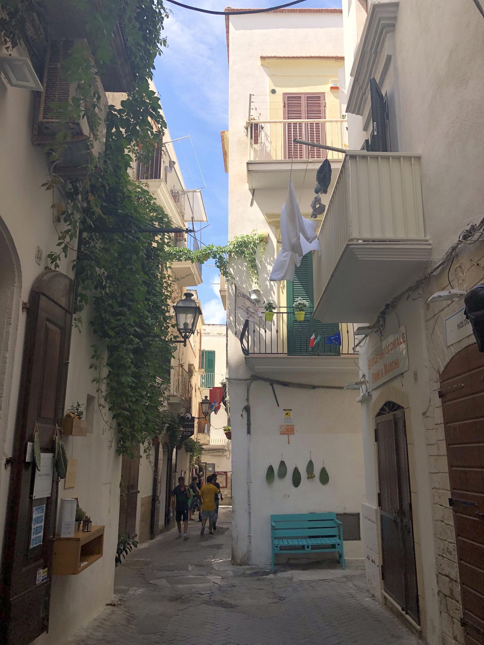 Si visita facilmente a piedi ed è veramente caratteristica, per il suo mare, le spiagge ed i suoi edifici bianchi. Passeggia per il centro storico che si erge su una grandissima roccia che domina il mare, visita il castello e la cattedrale della città e prova cibi tipici pugliesi in uno dei tantissimi forni che si affacciano sulla piazza principale.