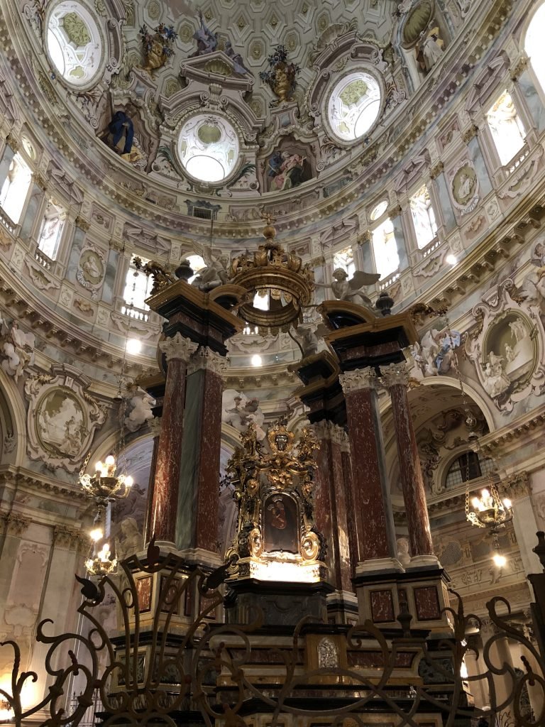 Alta 76 metri nel centro e ricoprente una superficie interna di 6036 mq è decorata con affreschi creati da diversi artisti e tutti dedicati alla Vergine.