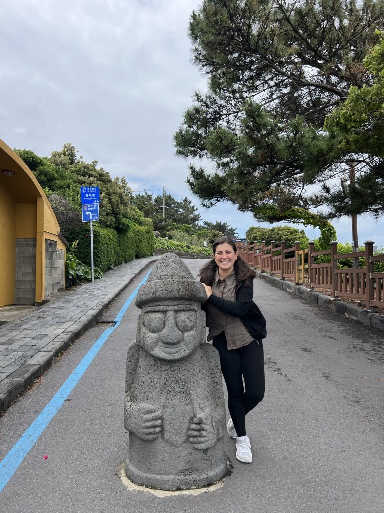 Uno dei simboli di Jeju Island sono i “dol hareubang”, delle statue in basalto che possono essere alte fino a due metri e ricordano una figura maschile, con i tratti del viso marcati, le mani poggiate sulla pancia ed un elmetto in testa.