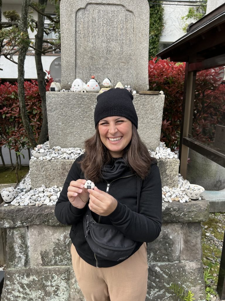 Qui si trovano centinaia di ema, sassolini e statuette a tema onigiri, i famosi triangolino di riso farcito giapponesi. Ma perché sono qui? Per un gioco di parole: infatti Takamimusubi = divinità del tempio e Omusubi = nome alternativo degli onigiri, da qui il collegamento.