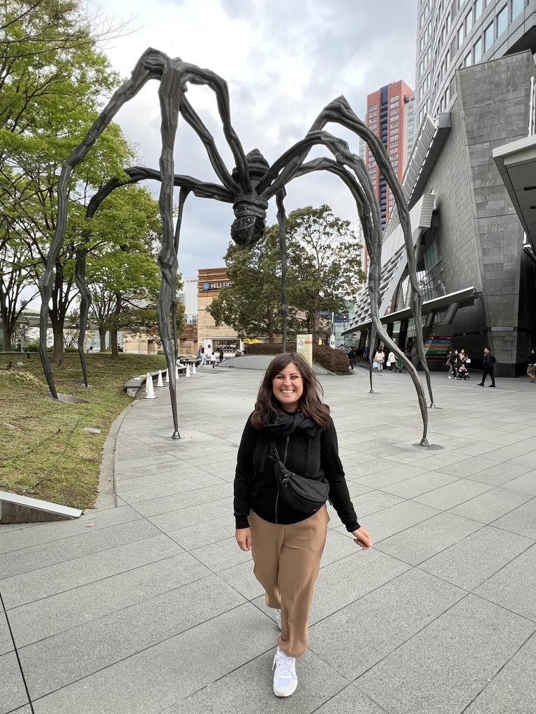 Il Ragno di Roppongi si trova tra altissimi grattacieli a Roppongi Hills, davanti l’entrata della Mori Tower. Il Roppongi Big Spider Maman è una scultura in bronzo e acciaio fatta dall’artista Louise Bourgeois che rappresenta un ragno, alto 10 metri, con il quale vuole lodare sua madre, paragonata ad un ragno e quindi intelligente, furba, utile e orotettiva.