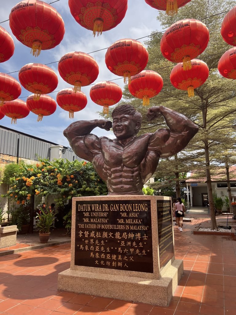 Mentre passeggiate per questa strada, ma in generale sparse un po’ per tutta la città, ci sono varie statue di Datuk Wira Dr. Gan Boon Leong. Quest’uomo è riconosciuto come il “padre del body building in Malesia” e fu anche un grande politico nel paese. Egli iniziò la sua carriera negli anni ’40, proprio a Malacca e vinse tutti i titoli di Body Building disponibili a quei tempi (“Mr. Malacca”, “Sig. Malaya” e “Mr. Asia”).