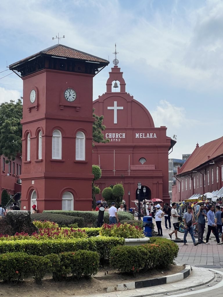 La Christ Church, con il suo colore rosso, è l’attrazione principale della città e fu fatta costruire nel 1753 proprio dagli olandesi. Di fronte la chiesa si trova anche la Torre dell’orologio e il Vecchio Municipio che costituiscono il cuore di Malacca.