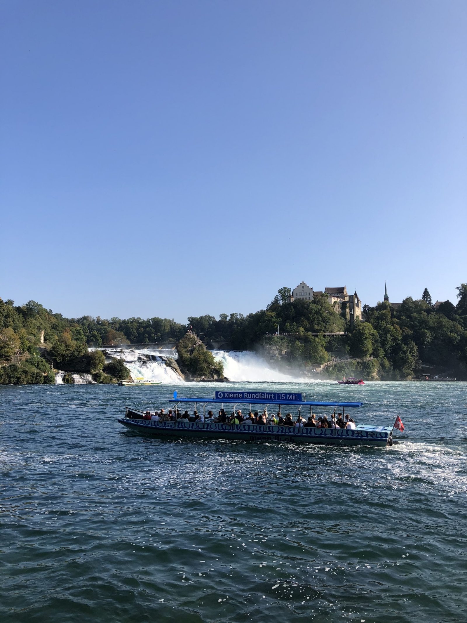 Al centro dell’enorme cascata si trova una grande roccia con una piattaforma panoramica, raggiungibile con un giro panoramico in battello sul Reno, che permette di arrivare anche ai Castelli di Wörth e di Laufen, costruiti più in alto.