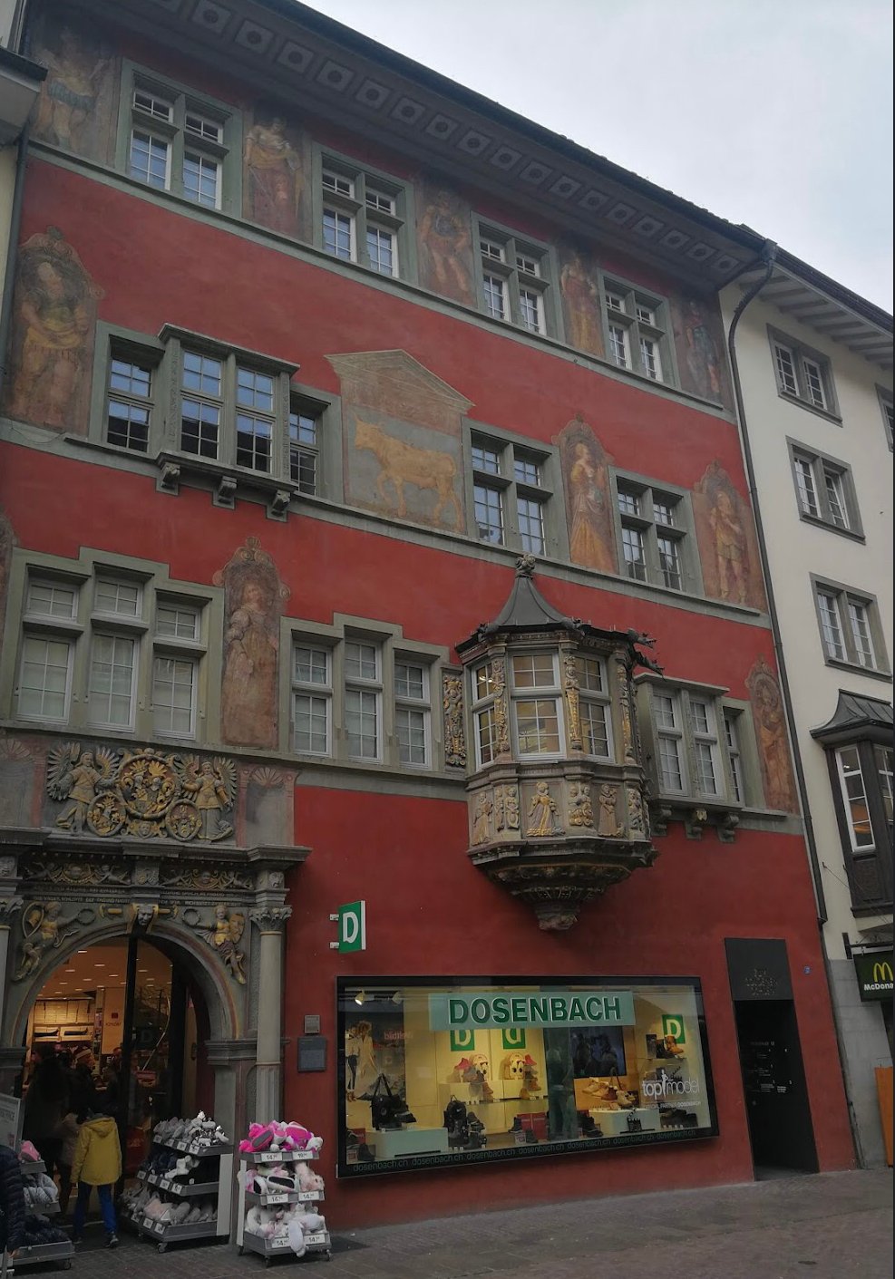 Il più famoso di questi è quello della Haus zum goldenen Ochsen (la “casa del bue d’oro”) in cui si nota ritratto il bue dorato che dà il nome al palazzo ed altre scene di guerra.