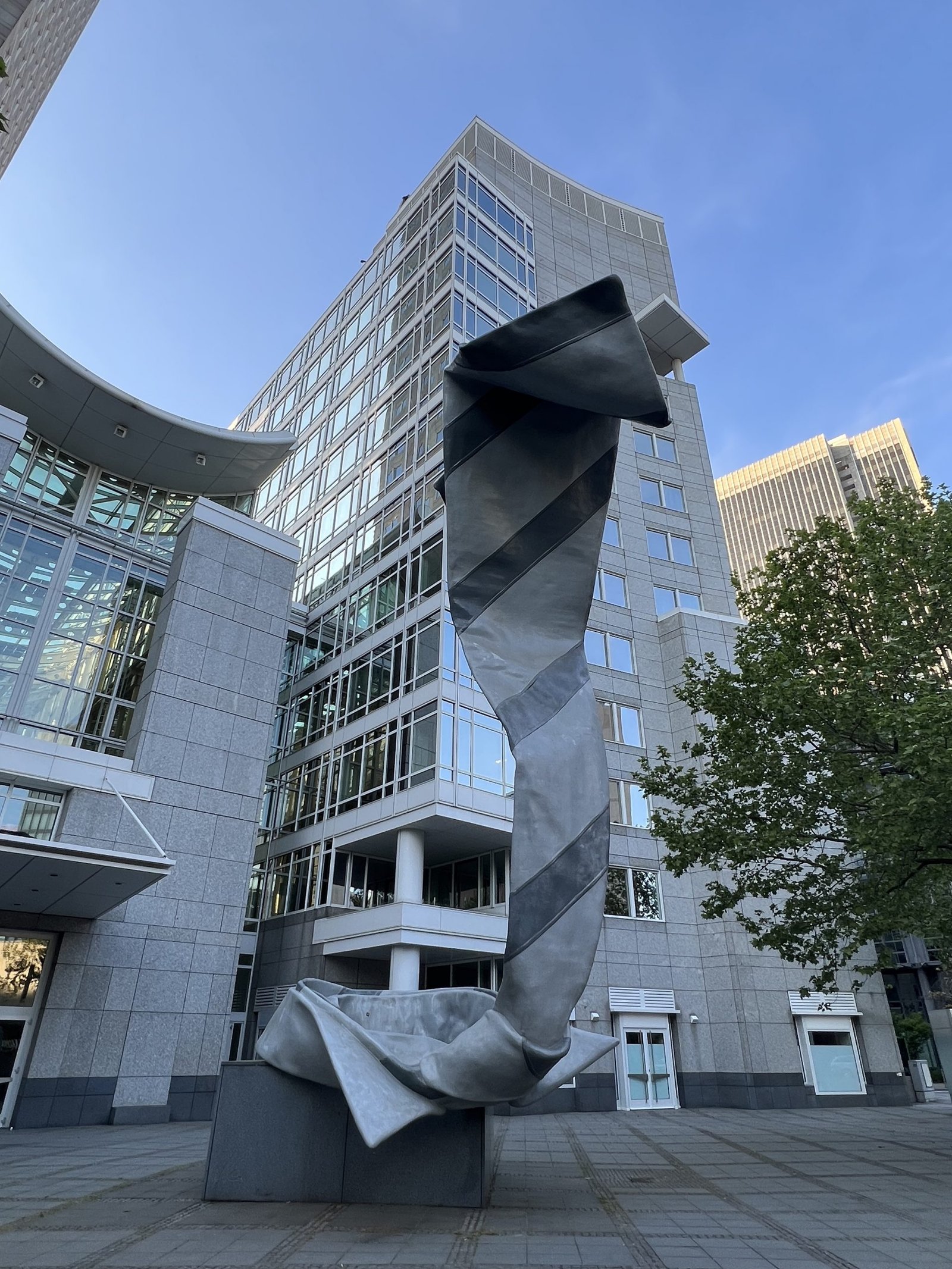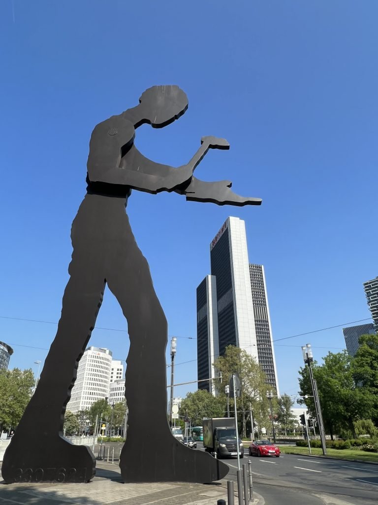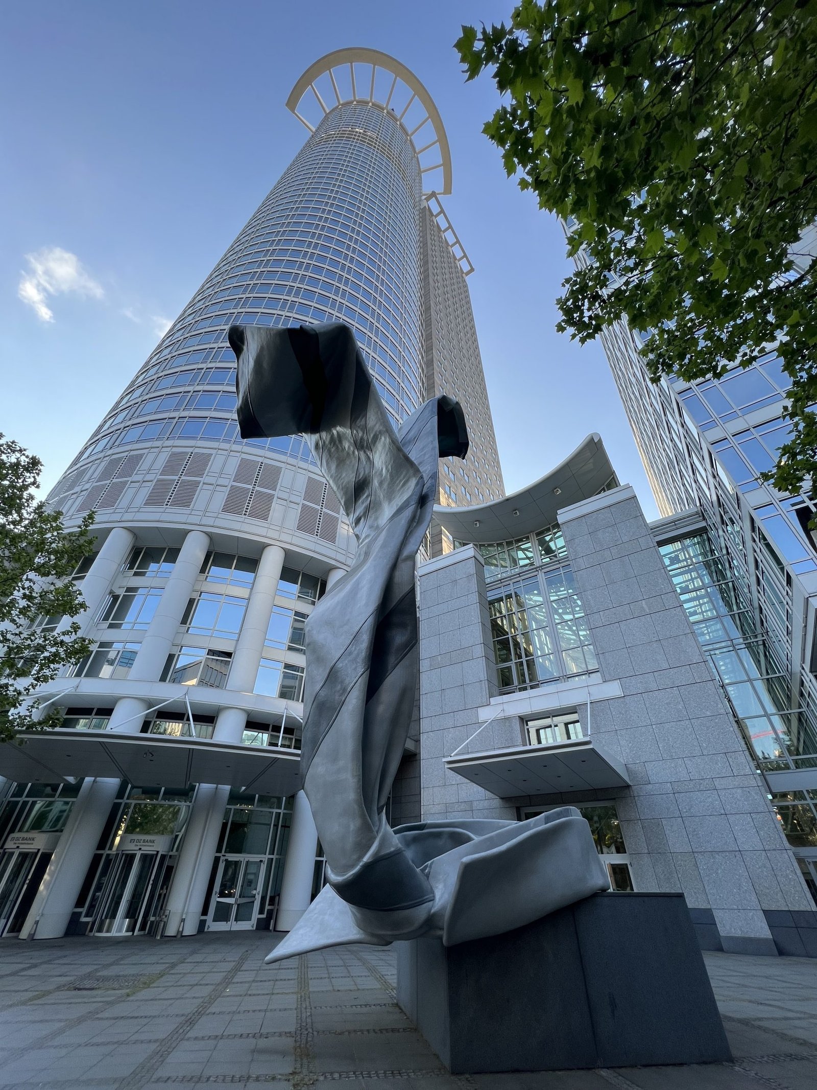 Passeggiando tra i grattacieli di Francoforte, mi è capitato di imbattermi in luoghi e sculture alquanto curiose. Un esempio è quest’opera a forma di cravatta che fluttua nel vento.