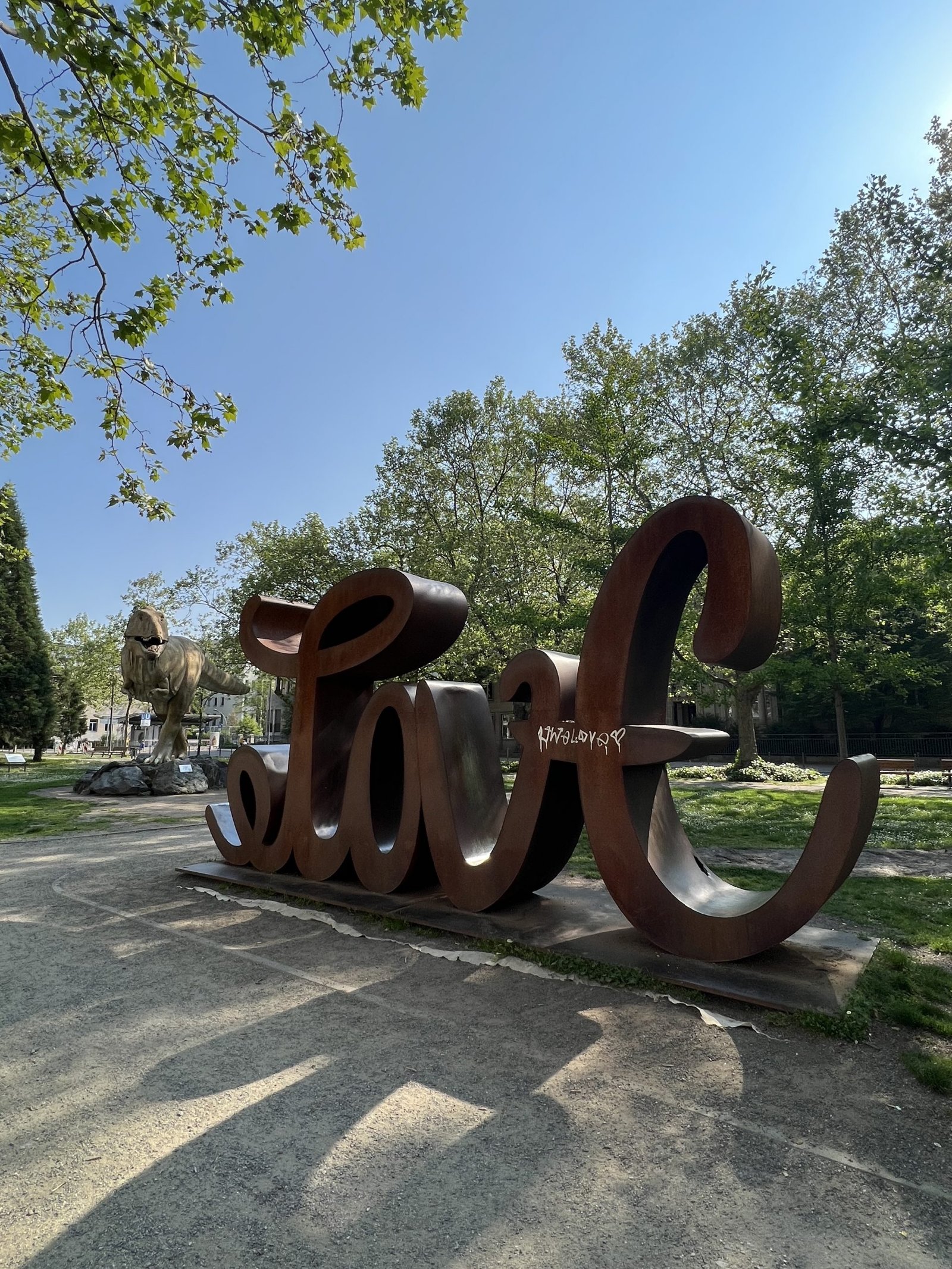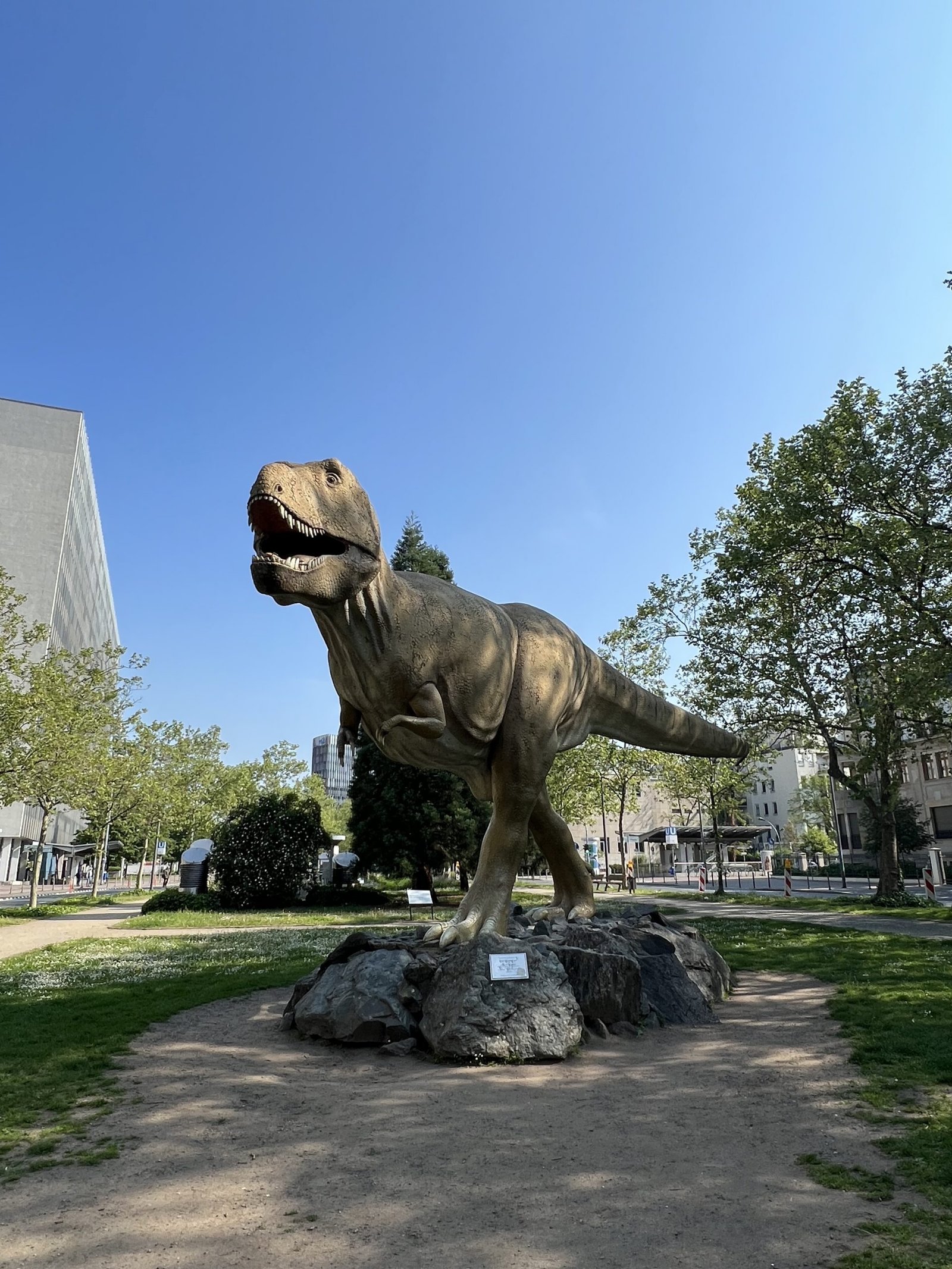 Continuando a camminare si raggiunge un grande parco, il Senckenberganlage, decorato con riproduzioni giganti di dinosauri e una scritta “LOVE”.
