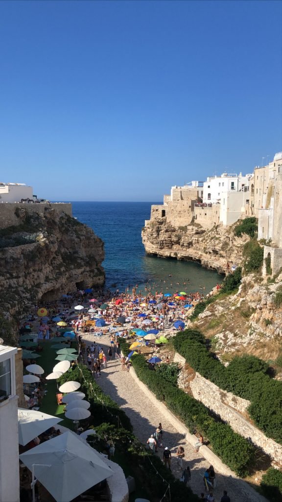 Oltre ad Alberobello, da visitare è Polignano a Mare. Sorge sul mare, su una scogliera che racchiude tantissime grotte e che va a formare una delle spiagge più belle della Puglia, il Lama Monachile. Questa è una piccola caletta di ciottoli dalle acque cristalline, che si apre tra due alte scogliere e, non avendo grandi dimensioni, puoi immaginare come sia difficile trovare un posto e stare comodi, quindi se proprio vuoi andare ti consiglio di arrivare lì la mattina prestissimo.
