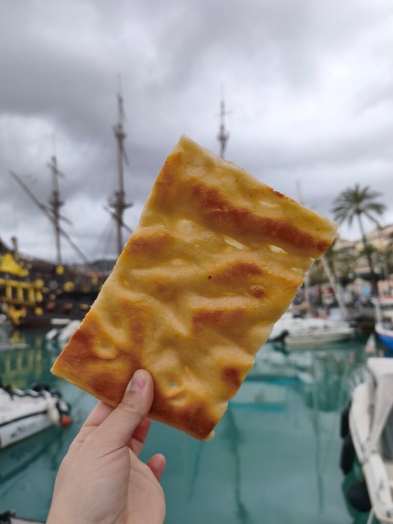 La focaccia genovese è un altro piatto che non può mancare nel tuo itinerario gastronomico. Questo pane morbido e leggermente unto d’olio extravergine d’oliva è semplice, ma irresistibile. Esistono varianti dolci e salate, ma quella più famosa è la focaccia alle olive o la classica focaccia senza sale, che esalta il sapore dell’olio d’oliva. I genovesi la consumano anche per colazione, abbinata e inzuppata nel cappuccino. Noi l’abbiamo provata anche se eravamo molto scettici al riguardo e dobbiamo ammettere che ci è piaciuta tantissimo.