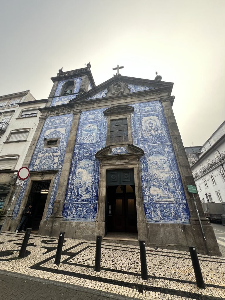 Situata nel cuore del centro storico, la Capela das Almas è una piccola chiesa con la facciata ricoperta di azulejos blu e bianchi. È uno degli esempi più straordinari di arte azulejar del Portogallo, con oltre 15.000 piastrelle che ricoprono le pareti esterne e raccontano episodi della vita di San Francesco d’Assisi e di Santa Caterina, a cui la cappella è dedicata.